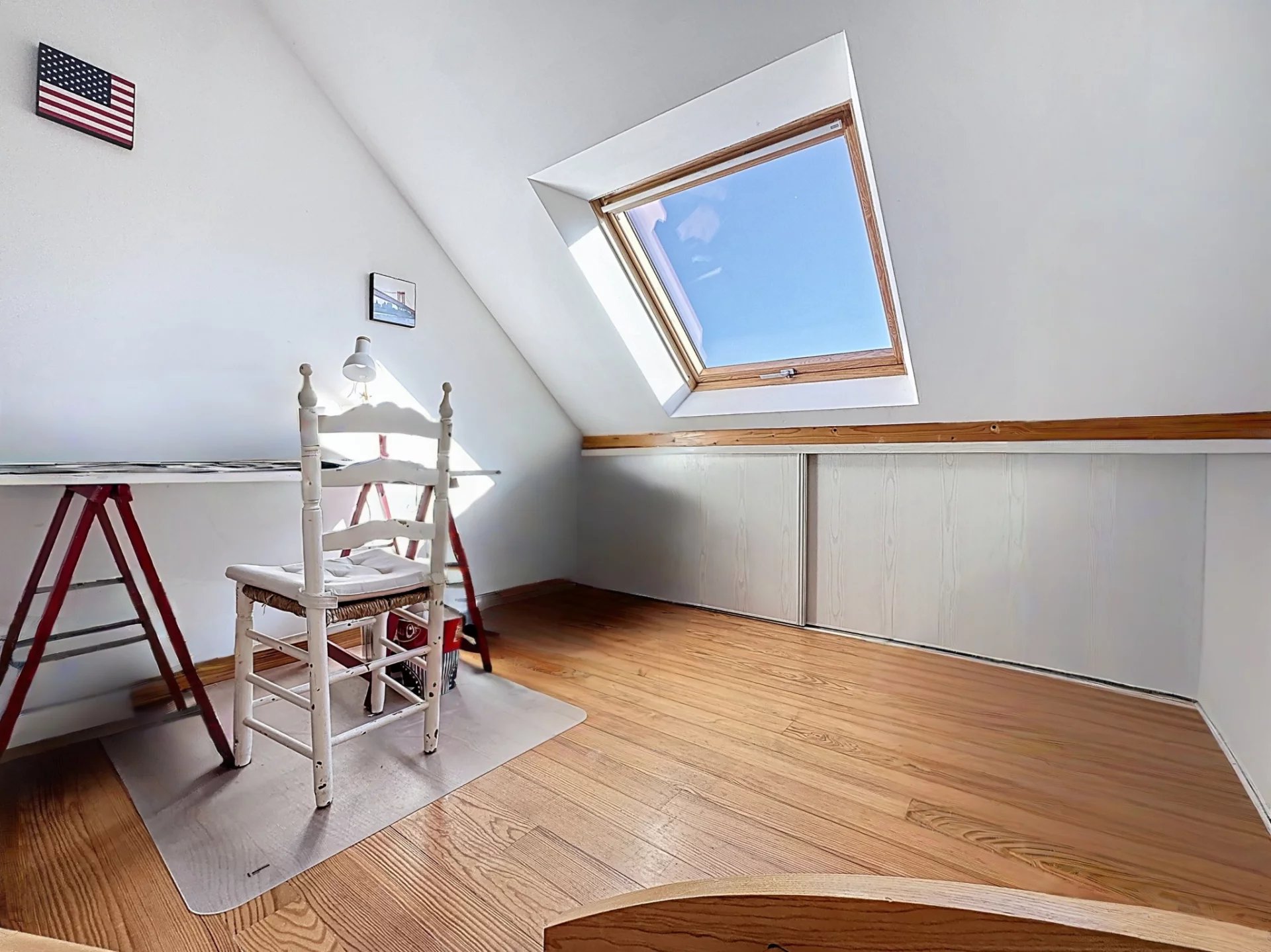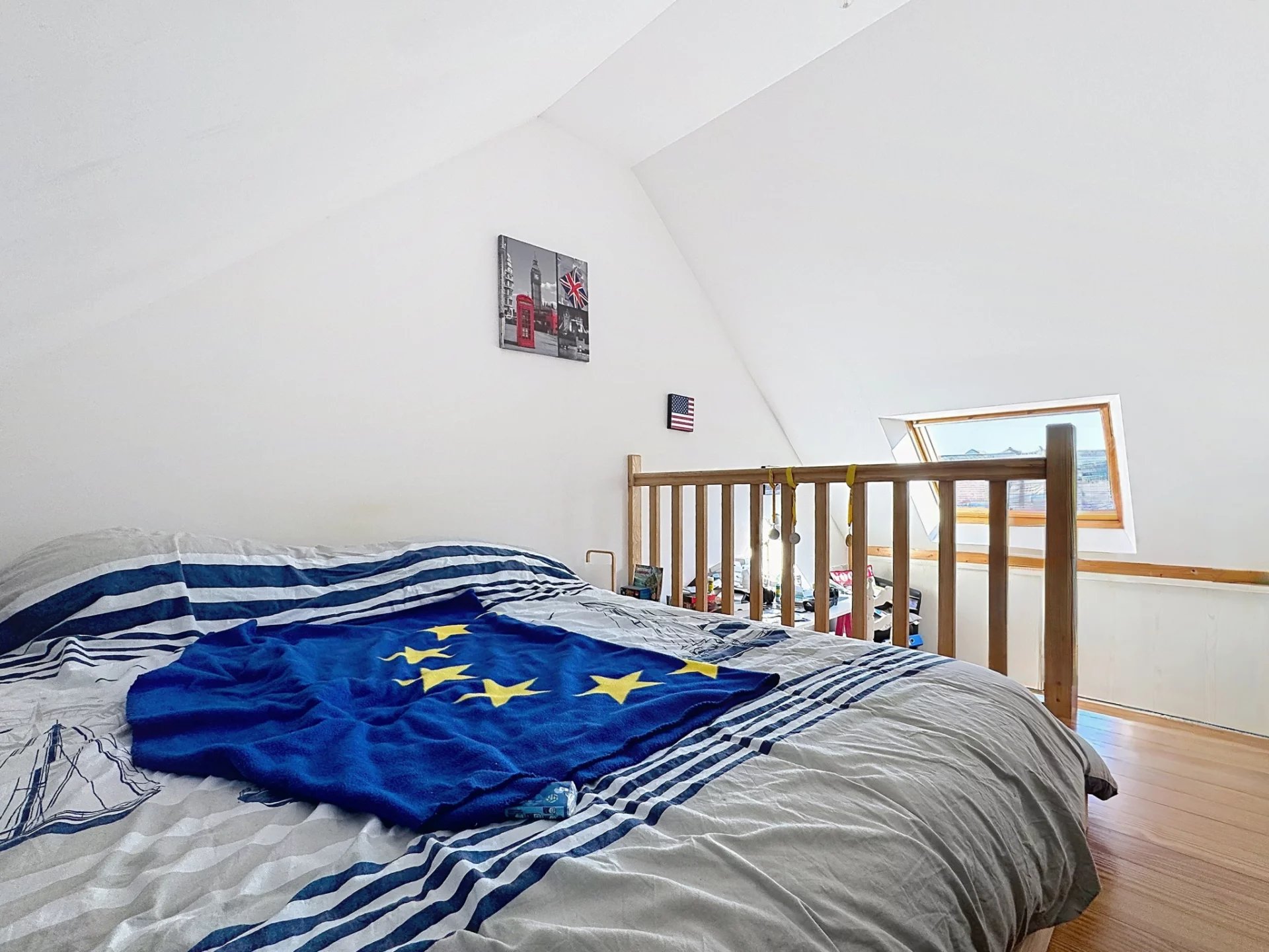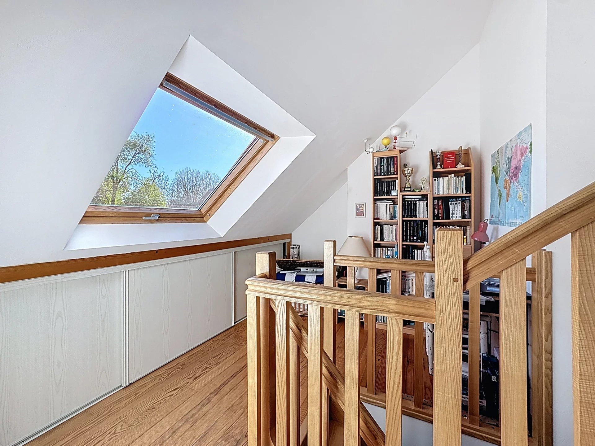 Au dernier niveau, un espace cosy a été imaginé avec une mezzanine desservant une grande chambre et une salle de bain.