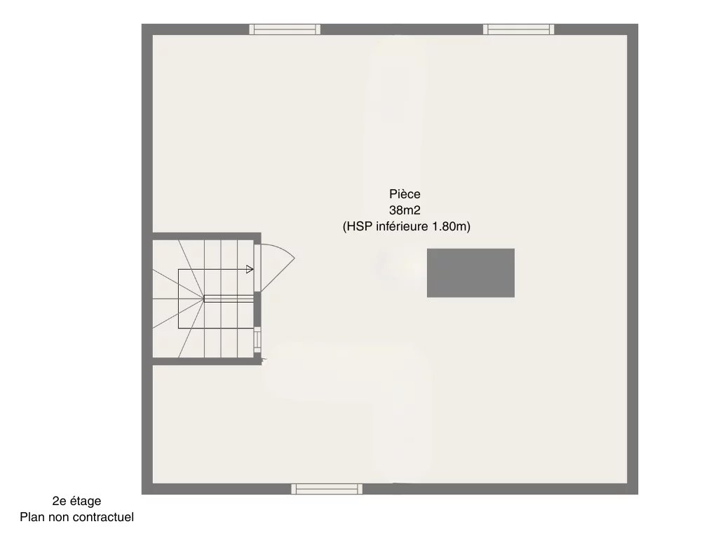 Au 2e étage : 1 grande pièce idéale pour un bureau, un espace enfants, une chambre d'appoint (1,70m de hauteur max).